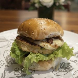 Pão de batata artesanal, Blend bovino show de bola (120gramas), 2 fatias de mussarela, 1fatia de presunto, 1 ovo frito, fatias de bacon, salada e maionese gourmet especial